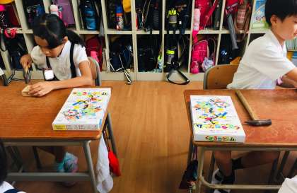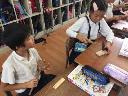 3年生は、「くぎうちゲーム」を作っています。作品展鑑賞(保護者の方)の日時は、10月25日(金)15時半〜17時、27日(日)9時〜12時です。ぜひ、ご来校ください。
