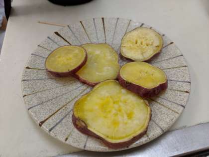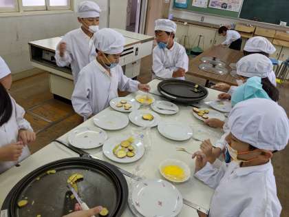 2年生が育てて収穫した「さつまいも」でおいもパーティをしました。2年1組の様子です。