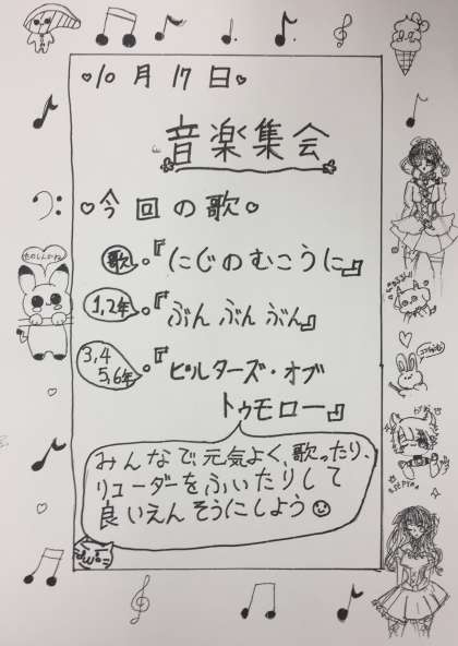 今日は、音楽集会をしました。すてきなハーモニーでした。