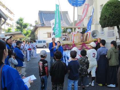 すばらし秋晴れのもと、大正区民祭りが行われました。地域や子ども育成会、PTAの方々のご尽力で、美しく飾り付けられた三軒家東地域のシンボルである「三東丸」の出発式です。