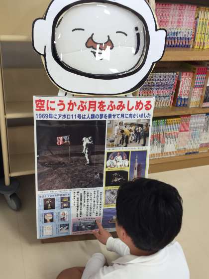 月の記事に関心をもって見ています。4年生児童の中には、「月の学習テストで、よい点数をとれて嬉しい。」や「教頭先生が放送朝会で『朝でも月が見える時がある』と言っていたけど、昨日の朝、出かけている時に空を見たら月が見えた。」と言っていました。