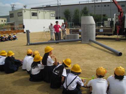 マンホールの中やふたを観察した後は、マンホールから家までの下水管はどのようにつながっているのかも見せてもらいました。