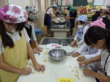 思い思いの型を抜き、慎重に焼いていました。焦げてしまうグループもありましたが、味はおいしかったそうです!