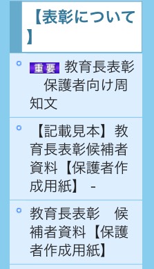 10月30日(水)令和元年度 教育長表彰候補者の確認について
