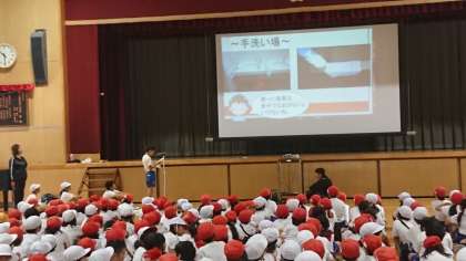 活動の様子です。閉会式の後は、環境委員会の発表をしました。
