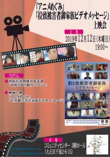 【ご案内】 「アニメめぐみ」「拉致被害者御家族ビデオメッセージ上映会」