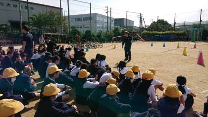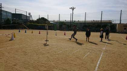 安全な自転車の乗り方の学習と「人が歩く」「小走り」「全速力で走る」それぞれ、笛を聞いて止まるまでにどれくらい進んでしまうかを学習しました。