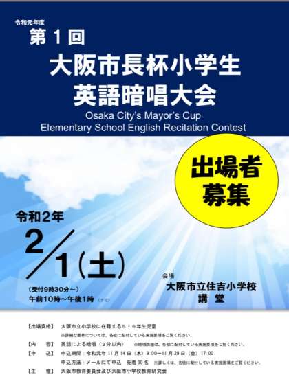 【ご案内】2月1日実施 第1回 大阪市長杯 英語暗唱大会