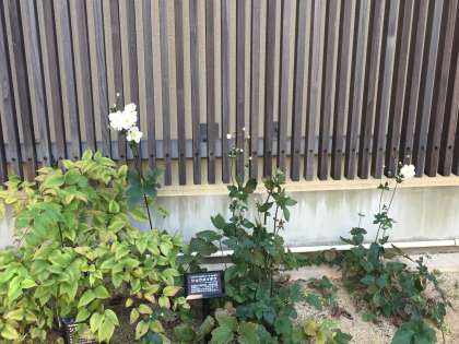 玄関に咲いている花「ホトトギス」と「シュウメイギク」です。