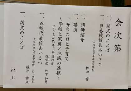 11月10日(日)PTA五校合同講演会『弁当の日と子育て』