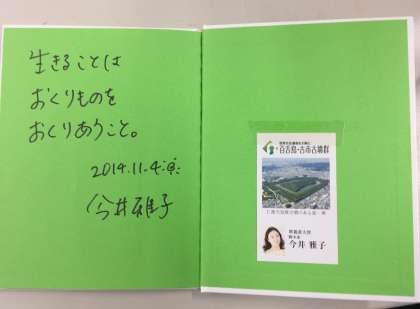来年度は、11月15日(日)の午後2時から三軒家東小学校で脚本家 今井雅子さんに講演をしていただく予定をしています。午前中は、学習発表会を行います。