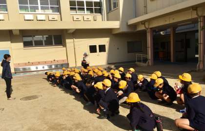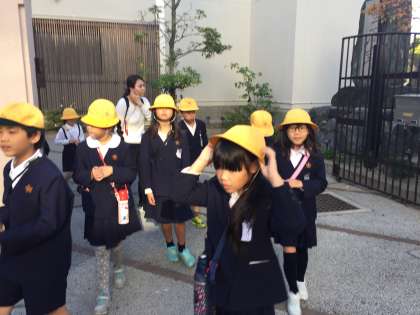 今日は、2年生と5年生がいずみホールで行われる音楽鑑賞会に行きます。2年生がいずみホールに向かいました。