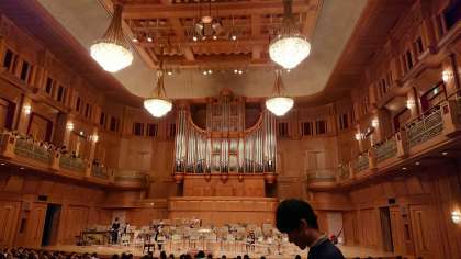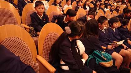 5年生が「いずみホール」で行われる、音楽鑑賞会に来ています。