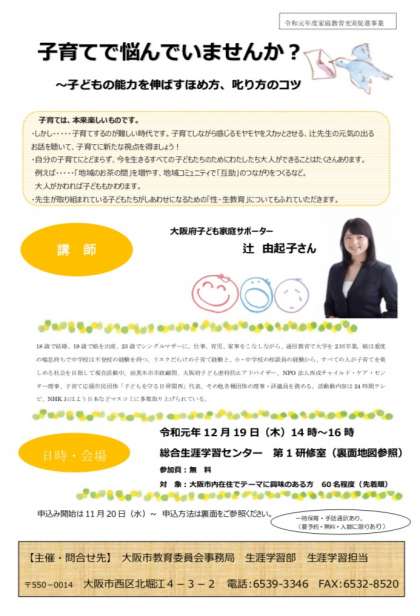 12月1【ご案内】12月19日開催 子どもの能力を伸ばすほめ方、叱り方のコツ