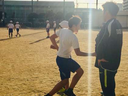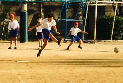 球技クラブの活動の様子です。異学年で、楽しくキックベースボールをしました。