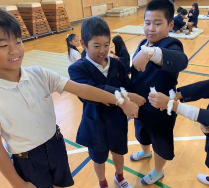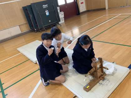 平野区わたの会の方に来ていただき、4年生がわた体験をしています。