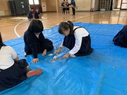 平野区わたの会の方に来ていただき、4年生がわた体験をしています。