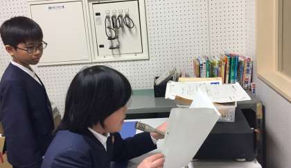 今日は、お昼の「ユーモアタイム」の時に、4年生の代表児童が読書感想文を発表しました。