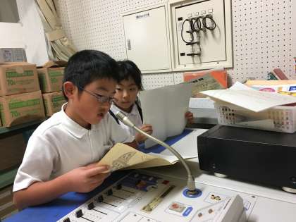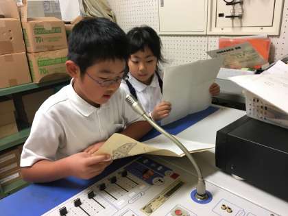 今日は、1年生が発表しました。「ま女ののろいアメ」と「レインボーとふしぎなえ」の本を紹介しました。練習の成果が実り、上手に発表できました。