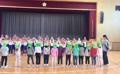 2年生が大浪保育所の園児に「パプリカ」の歌を歌いました。