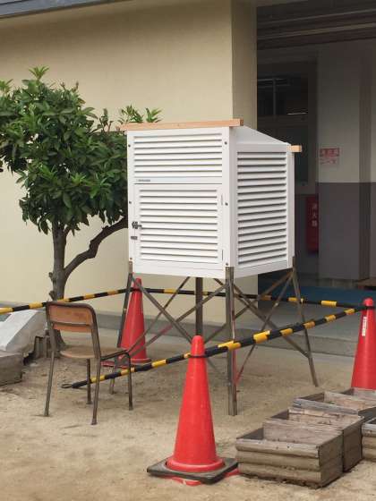 管理作業員さんが理科の学習で使う百葉箱(ひゃくようばこ)の修理をしてくださっています。