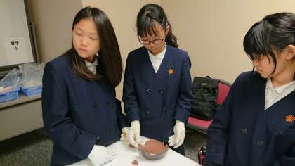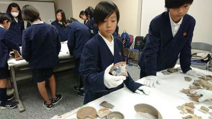 土器接合体験の様子です。