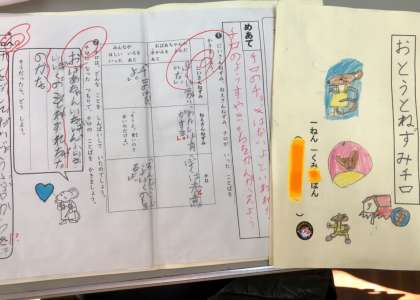 チロブックの表紙です。並行読書として読んだ本のすきな人ぶつを紹介するカードを書きました。読書ノートに書いた内容を生かしています。