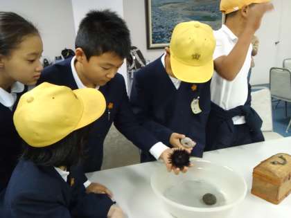 鳥羽水族館の生き物体験教室で生き物たちとふれあいました。