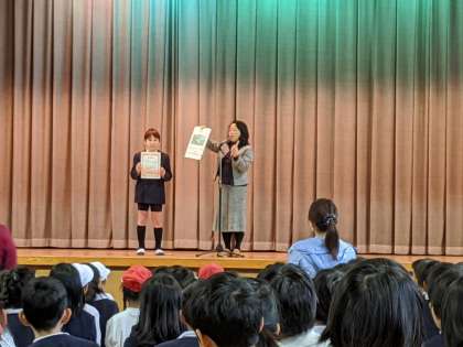 学校長から表彰されました。