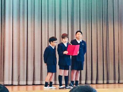今日の児童朝会では、校長先生から12月2日付の朝日新聞、朝日デジタルで掲載された児童名の紹介がありました。