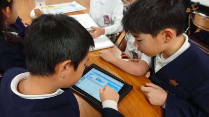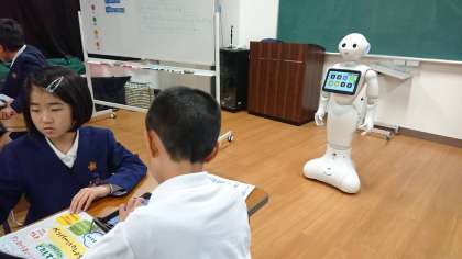 株式会社 ライト通信の方に、ペッパー君を活用したプログラミングの出前授業をしていただきました。子どもたちはタブレットを使って、ペッパー君に自己紹介をさせようと、プログラミングを考えました。