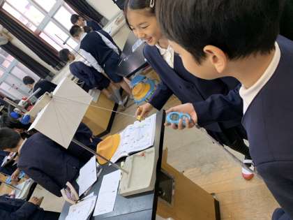 ふれはば、おもりの重さ、ふりこの長さの条件を変えて、ストップウォッチで時間をはかりました。実際にふりこの動きを見ることで学習してきた内容がよくわかったようでした。