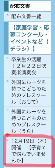 学校ホームページ 右欄【配布文書】からも、案内チラシをご覧いただけます。