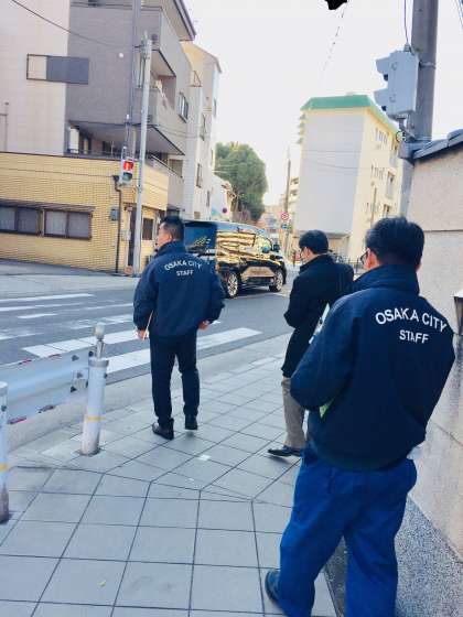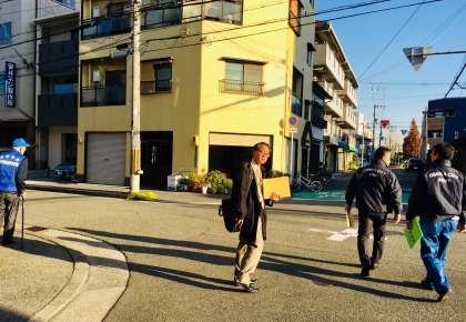 大正区役所の方と、通学路の安全点検を実施しました。より安全な通学路をめざして取り組んでいます。道を横断するときは、信号は必ずまもり、横断歩道を通りましょう。