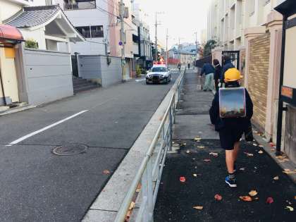 見守り隊の方だけでなく、警察の方も、児童の登校を見守ってくださいました。