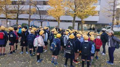 今日は、5年生が社会見学に来ています。午前中は読売新聞の見学です。