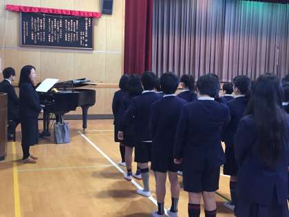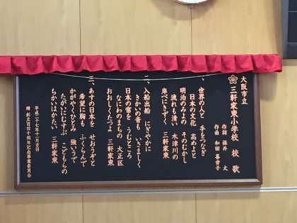 式の初めには「大阪市歌」を歌い、最後には「三軒家東小学校 校歌」を歌いました。