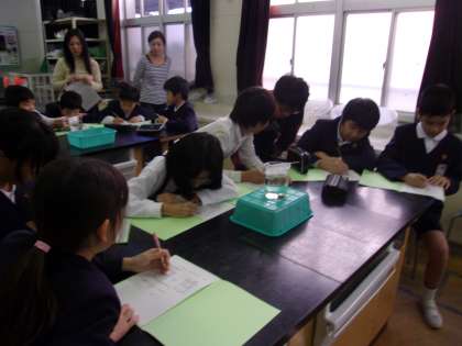 11月4日(火)の5時間目に5−2で理科の授業研究会がありました。「もののとけ方」という単元で、水溶液についてイメージ図を描いて考える学習をしました。大正区の理科の担当の先生方も参観に来ていただきました。グループごとに話し合ってイメージ図をしっかり描くことができていたと褒めてもらいました。