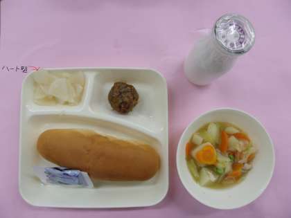 今日の献立は「たこボール、洋風煮、だいこんのサラダ」でした。