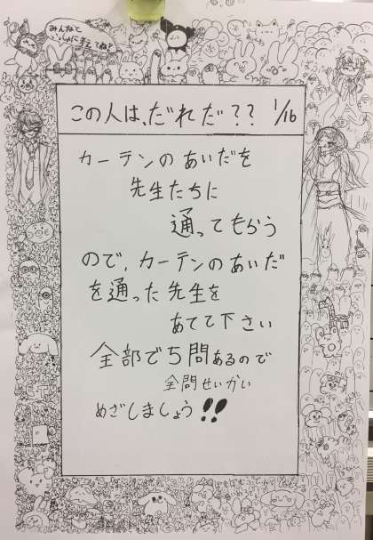 明日の全校児童集会は、「この人は、だれだ」ゲームをします。