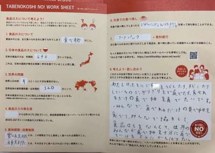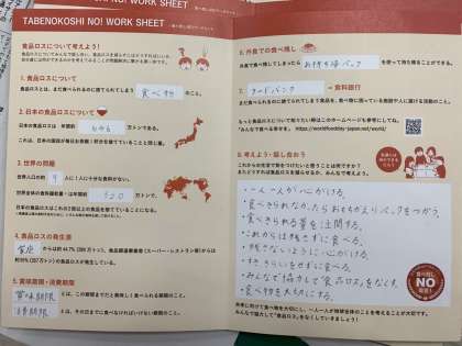 食べ残しNOゲームを通して、「食品ロス」に向けて、子どもたちは自分でできることやみんなで取り組んでいくことについて考えました。未来価値創造大学校が作成されたワークシートを活用しました。