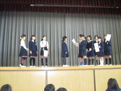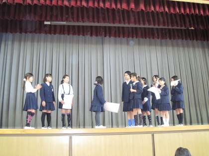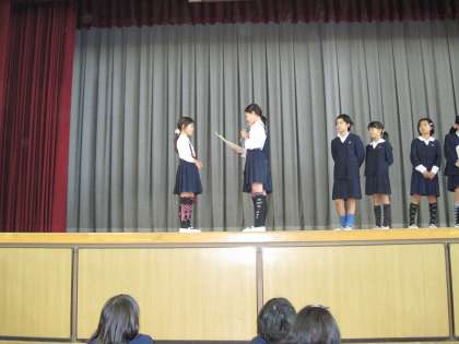 ○×ゲームの後、保健委員会による、清潔調べの表彰式がありました。1か月間頑張っていたクラスが表彰されました。