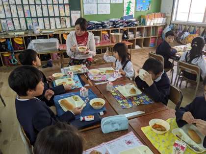 また、いつもは牛乳が苦手で全然飲めない児童も、給食調理員さんに応援されていつもより飲むことができていました。これを機会に牛乳が飲めるようになるといいなと思います。