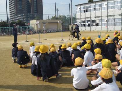 4時間目は5・6年生に、自転車の乗り方について指導していただきました。警察の方が、まずお手本を見せてくださいました。自転車の事故は大変多いそうです。人と自転車、自転車どうし、車と自転車、どれも相手があることですが、まずは、自分自身が気をつけることです。正しい自転車の乗り方を身につけて欲しいものです。