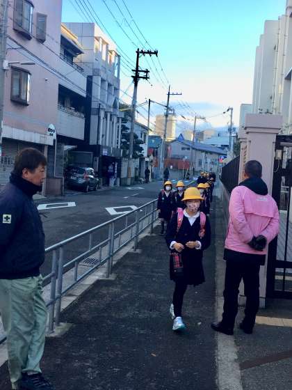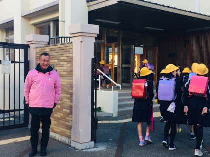 今週は、あいさつ週間です。今日は、登校時に大正区長 吉田康人さんと元気にあいさつをしました。