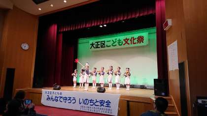 大正東地区鼓笛バンド「ザ グリーン アップルズ」の演奏が始まりました。本校児童もメンバーにいます。
