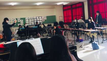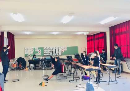 出演する音楽クラブと舞台クラブの児童が、最後のリハーサルをしました。