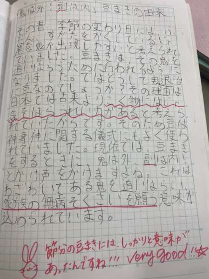 家庭学習の紹介です。「豆まきの由来 鬼は外 福は内」 理科学習(予習)「温度と体積のかんけい」