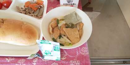 大阪市の給食では、大阪で生まれたと言われる「きつねうどん」に大阪で昔から作られている「とろろこんぶ」をのせて食べるうどんのことを『なにわうどん』と呼んでいます。