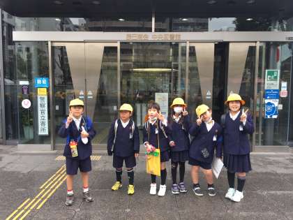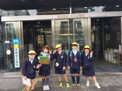 大阪市立中央図書館(西区)に無事に到着して、記念写真を撮りました。